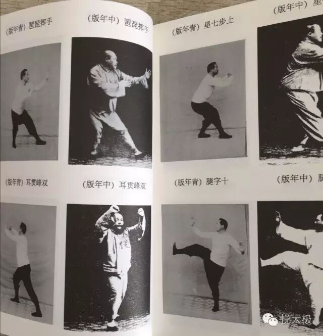 A: 兩套拳架的姿態差異反映了楊式家傳太極拳由繁到簡、由難到易,由少數人才能掌握到人人都可練習,由注重技擊到適應時代要求的變革。傅鐘文在上海,崔毅士在北京中山公園傳教的太極拳,均取楊澄甫晚年的拳照,今人稱之為楊式大架;陳微明在上海致柔拳社、師父在北京通州傳教的太極拳,取楊澄甫年輕時的拳照,今人稱之為楊式老架。雖拳姿有差異,但動作名稱、順序與現今社會廣為流傳的楊式太極拳傳統套路完全一致。