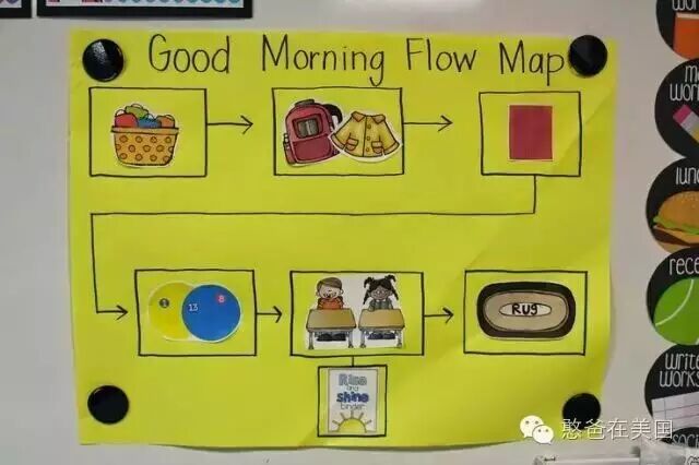 Map(流程圖),描述出早上起床後做的幾件事情,清晰明瞭還特別有條理,孩子也容易遵從。