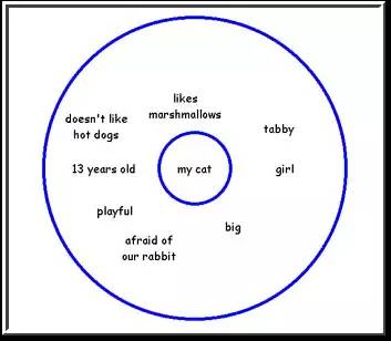 比如小圓裡面定義研究主題是“我的貓”,大圓裡面就可以寫“13歲了”、“母的”、“個頭大”、“很可愛”、“不喜歡熱狗”、“害怕兔子”等等。