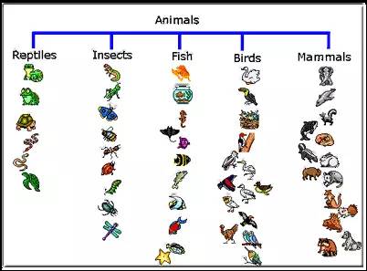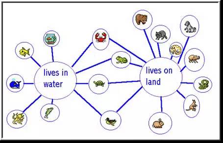 比如主題泡泡是水裡的動物和陸地的動物,屬性泡泡就是那些相關的動物們,通過圖就能看出螃蟹、烏龜、青蛙、鴨子等既生活在水裡,也能生活在陸地上。