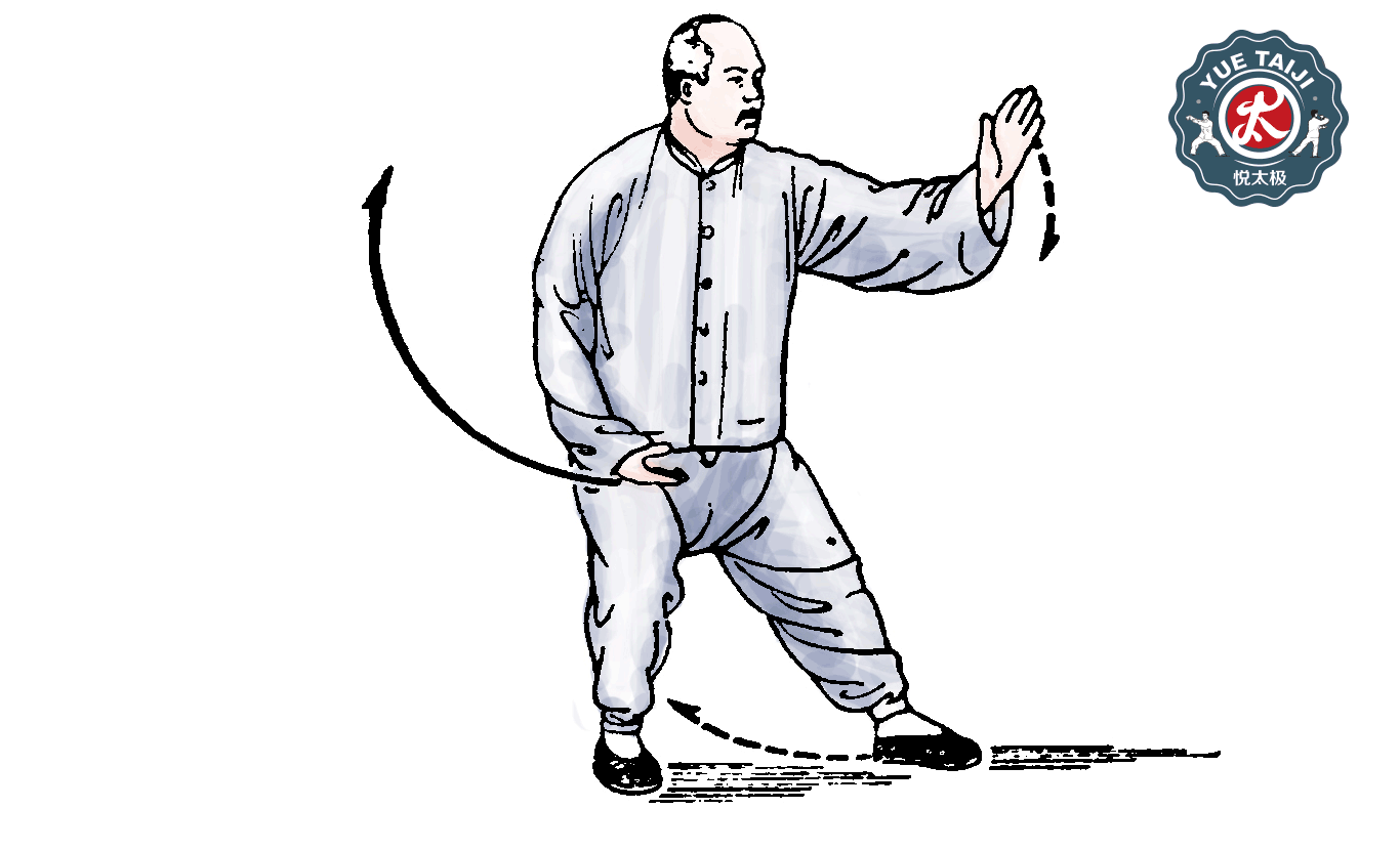 脊柱的“左右转动”是太极拳形成圆弧动作的动力源,是以脊柱带动四肢运动的主要方式。