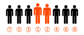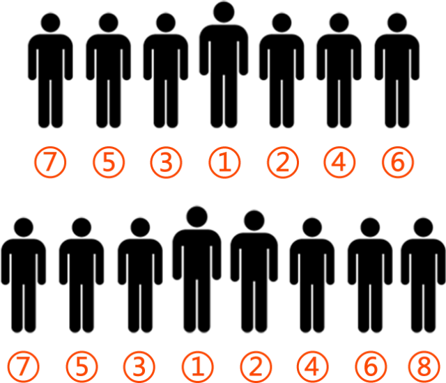 主席台座次安排,领导为偶数时,1、2号领导同时居中,2号领导依然在1号领导左手位置,3号领导依然在1号领导右手位置。可参见下图的座次排列: