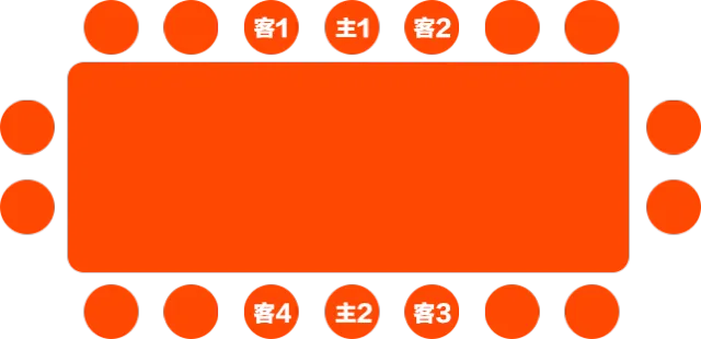 如果是西餐,餐桌不同,因此,座次也有所改变。可参见下图的座次排列: