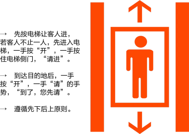 (5)旅行车接送客人:旅行车以司机座后第一排,即前排为尊,后排依次为小。其座位的尊卑,依每排右侧往左侧递减。