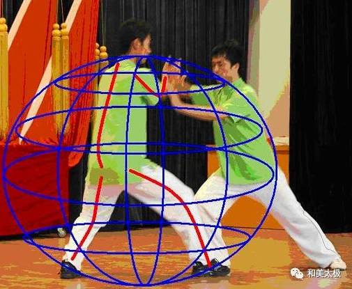 图1,3,4是外圈劲,是用圆球体理解化发,看来合理因为看来最保护自己,但其实是将力量困在自己身上,因弧面向外,很难不丢不顶合上对手的力量转回对手身上。图2是内圈劲,是内弧面向对手,更能做到不丢不顶,引进对手让他以为冲向你,其实像滑板的跑道,引他进内弧面上借他自己力量发他出去,图2最可取。