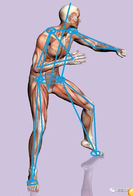 四体一面,脚趾抓地,提脚跟,转胯!门轴加三角结构,基本间架形成。